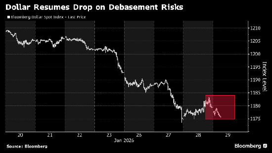 “贬值交易”押注美元购买力将长期下降,原因是市场担忧美国政策制定难以预测、巨额赤字难以持续以及美国日益孤立。彭博美元指数今年已下跌超过2%,2025年下跌8.1%。